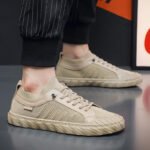 Fashion Men’s Sneakers Low Top Lace Up Outdoor Casual Shoes Flat Bottom Breathable Comfortable Canvas Shoes-vt111