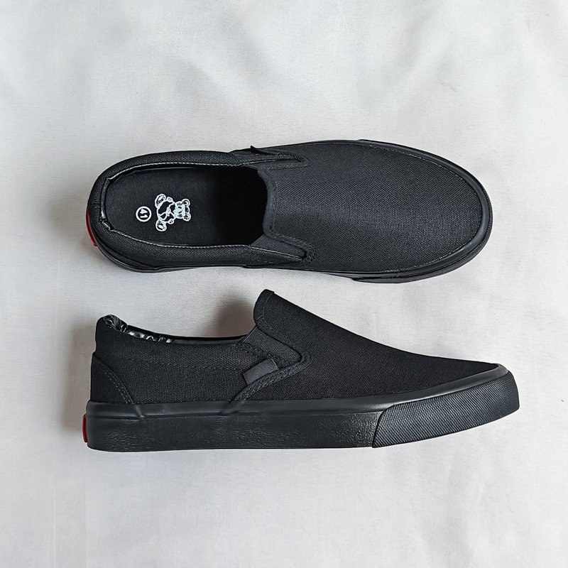 These slip-on black canvas shoes combine simplicity, comfort, and versatility. With their timeless design and easy-wear functionality, they are the perfect addition to your everyday essentials.