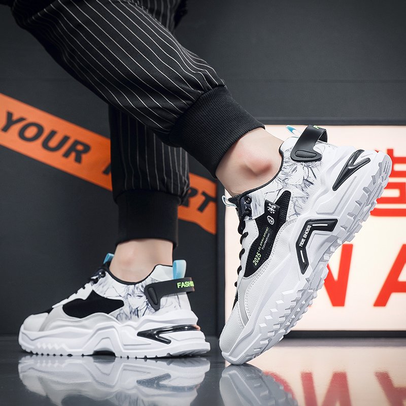 These trendy sports shoes combine style and functionality, designed for consumers who seek individuality and comfort. The upper is made of breathable mesh material, ensuring lightweight comfort, paired with bold graffiti patterns that showcase a unique streetwear style. The thick, anti-slip outsole offers excellent traction and stability, allowing you to move freely during daily wear or outdoor activities. The stylish color-blocking design and intricate detailing add a striking visual impact, making this a must-have fashion item for 2025. Whether for casual outings or fitness activities, these shoes meet your versatile needs and keep you effortlessly ahead of the fashion curve.