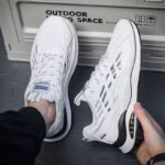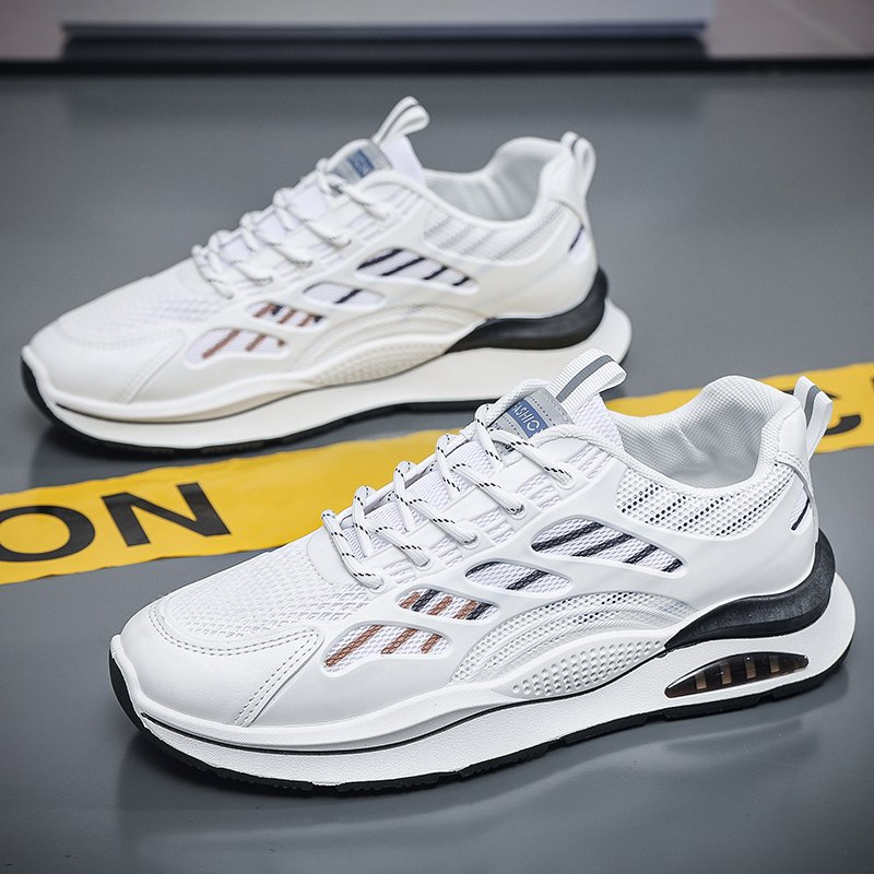 These sneakers combine stylish design with exceptional functionality, providing you with a comfortable wearing experience. Made with breathable mesh material, they keep your feet dry and comfortable. The thickened cushioning air sole offers excellent shock absorption, making them perfect for running, workouts, or daily wear. The outsole features anti-slip and wear-resistant rubber, enhancing grip and stability for safe walking. The clean, modern color scheme paired with a streamlined design makes these shoes versatile for any outfit, blending sport and casual style seamlessly.