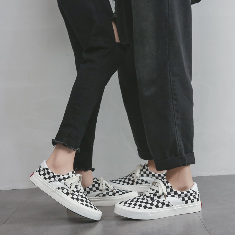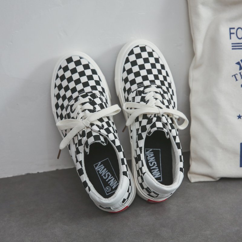 Niche Plaid Low-Top Canvas Shoes with round Toe New Student Street Shot Skateboard Casual Shoes-vt77
