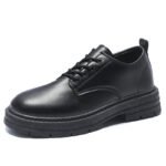 This classic black leather shoe perfectly combines style and functionality, crafted from premium cowhide leather for a fine texture and durability. Its minimalistic design is paired with a sturdy rubber anti-slip sole, providing excellent grip and comfort for your feet. Whether for business occasions or everyday casual wear, this pair ensures effortless elegance. The exquisite stitching and solid shoe structure highlight a mature and sophisticated look, making it a must-have addition to your wardrobe. Step forward with confidence and poise!