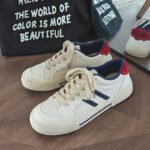 - Classic Color Combination: White base with blue stripes and a red heel for a simple yet fashionable design.