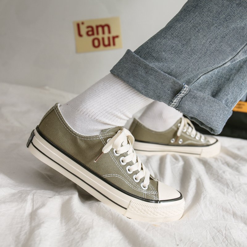 Combining a classic retro design with exceptional comfort, these army green low-top canvas shoes are the perfect choice for everyday wear. Whether for casual outfits or streetwear style, they add a touch of personality and timeless fashion to every step.