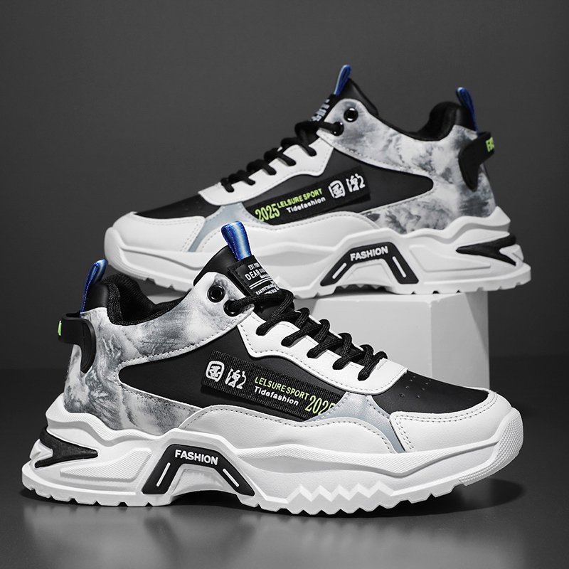 trendy sports sneaker blends street style with modern design, featuring high-quality leather and breathable mesh panels for durability and comfort. The unique black, white, and gray color-block design, complemented by bold trend-inspired logos and detailed accents, makes it stand out from the crowd. The thick, non-slip outsole provides excellent support and stability, perfect for both everyday wear and athletic activities. Whether you’re a fashion enthusiast or someone who prioritizes comfort, this sneaker is a must-have to help you effortlessly embrace urban style. Get yours now and step into a new chapter of fashion!