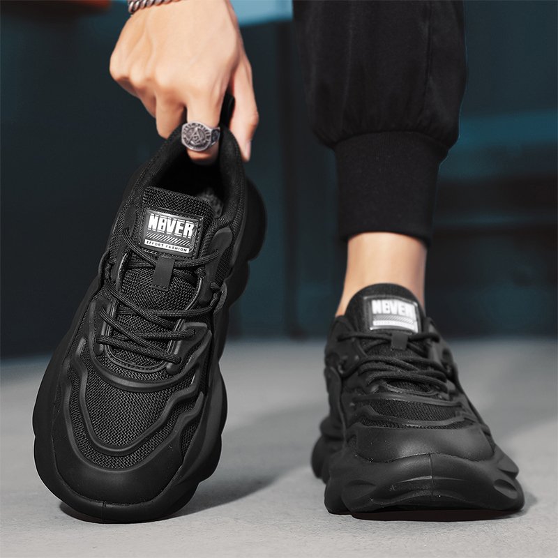 These all-black chunky sneakers combine modern aesthetics with ultimate comfort. Featuring a breathable design and superior cushioning, they are perfect for making a fashion statement while ensuring all-day comfort.