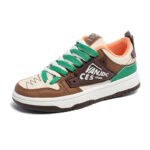 This trendy and stylish sneaker features a unique color-blocking design, with brown and beige as the main tones accented by striking green details, creating a distinctive and eye-catching look. The upper is made of high-quality synthetic materials, offering both breathability and durability to ensure all-day comfort. The thickened sole provides excellent cushioning and enhanced support, making it perfect for everyday wear or light exercise. The side of the shoe features personalized logo designs and textured details, adding a touch of street fashion. Whether paired with casual or athletic wear, these sneakers will make you stand out in the crowd!