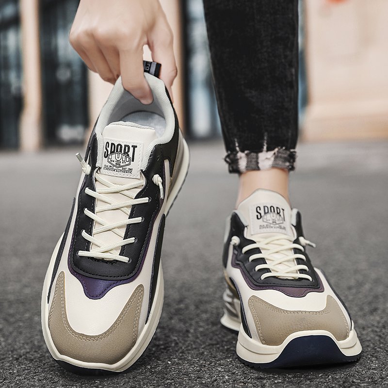 This stylish casual sneaker perfectly combines modern trends with comfort and performance. Made from high-quality materials, the shoe offers a durable and breathable upper for a lightweight and comfortable fit. Its unique patchwork design, paired with classic color combinations, showcases an urban casual style, making it ideal for various occasions, from daily commutes to casual outings. The outsole is crafted from anti-slip, wear-resistant rubber, providing stability and a comfortable walking experience. Let this modern and fashionable sneaker become an essential addition to your wardrobe!