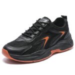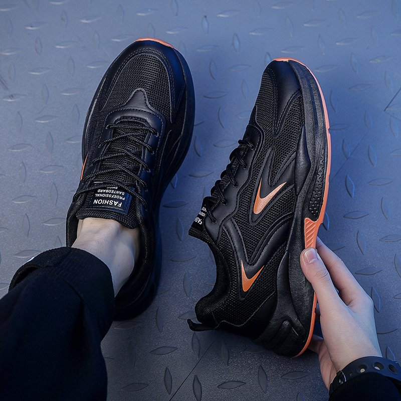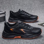 These black and orange sneakers are designed with dynamic style and functionality in mind, offering a perfect blend of fashion and comfort for everyday wear. The upper combines high-quality breathable mesh with durable synthetic leather, ensuring excellent ventilation and long-lasting use. The lightweight sole provides superior cushioning, while the orange accents add a vibrant touch to the overall design, making them ideal for streetwear or athletic activities.