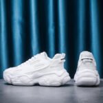 These all-white retro chunky sneakers combine trendiness and comfort, featuring a sleek yet bold design that’s perfect for streetwear and everyday outfits. The upper is crafted from high-quality synthetic leather and breathable mesh, ensuring durability and ventilation. The thick sole provides exceptional support and cushioning, making them ideal for daily commutes or sports activities, delivering unparalleled comfort with every step.