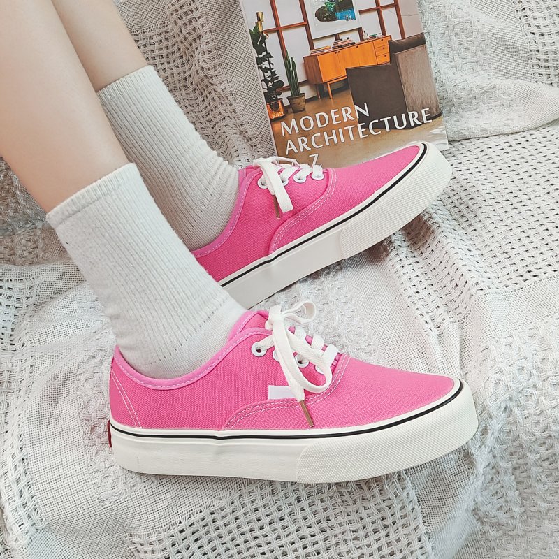 These cherry blossom pink canvas shoes combine sweet tones, comfort, and versatility to become a must-have addition to your wardrobe. Whether for daily wear or special occasions, they effortlessly bring out your youthful and stylish charm.
