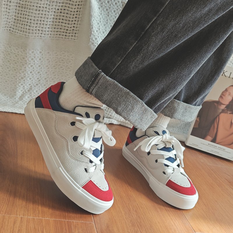 These casual, sporty canvas shoes combine stylish simplicity with ultimate comfort, making them a versatile addition to your wardrobe. The upper features premium suede and canvas materials with a classic red, white, and blue color-block design, exuding energy and style. The wide shoelace design not only adds a unique aesthetic but also ensures a secure fit. The soft, breathable lining and lightweight materials deliver all-day comfort, while the anti-slip, wear-resistant rubber outsole provides excellent traction and stability. Perfect for casual wear, outings, or sporty activities, these shoes are your go-to choice for effortless style and versatility.