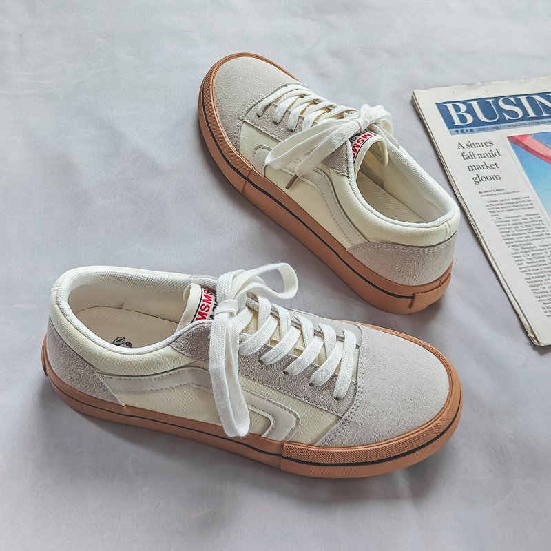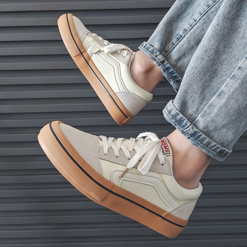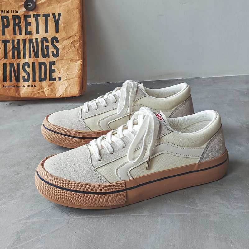 Retro color matching, fashionable and versatile: beige canvas and suede splicing design, with classic caramel color outsole, showing the retro literary atmosphere, suitable for multiple occasions.