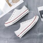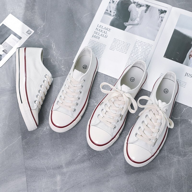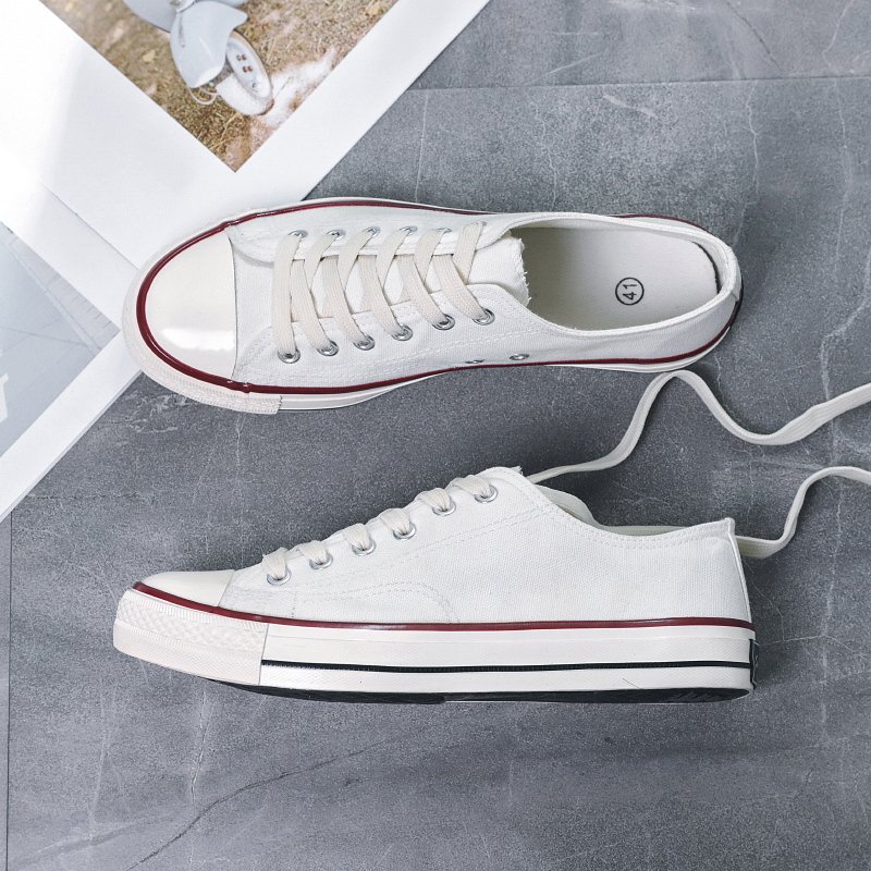 This classic low-top canvas shoe features a simple and versatile design, crafted with high-quality canvas material for breathability and long-lasting wear. The soft sole, combined with a foot-friendly fit, ensures all-day comfort. The red and black double-line accents on the upper add a touch of detail, making the shoe stylish yet understated. The classic round-toe design with a white toe cap not only enhances the aesthetic but also increases the durability of the shoe. Whether for daily commuting, casual outings, or outdoor activities, this shoe effortlessly adapts to any occasion, making it an essential item in your wardrobe. Simple yet tasteful, it’s perfect for those who seek both comfort and style!
